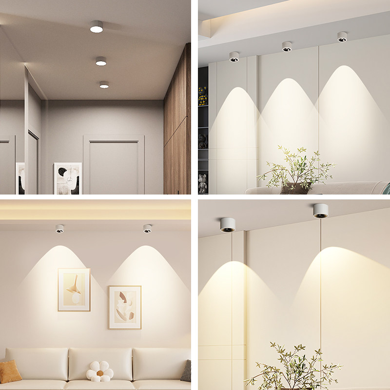 超薄明装 射灯可调角度led天花灯客厅家用免打孔吸顶桶灯过道筒灯