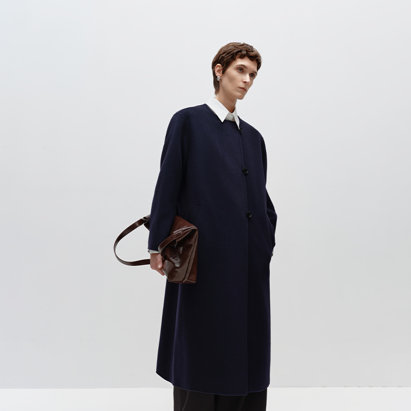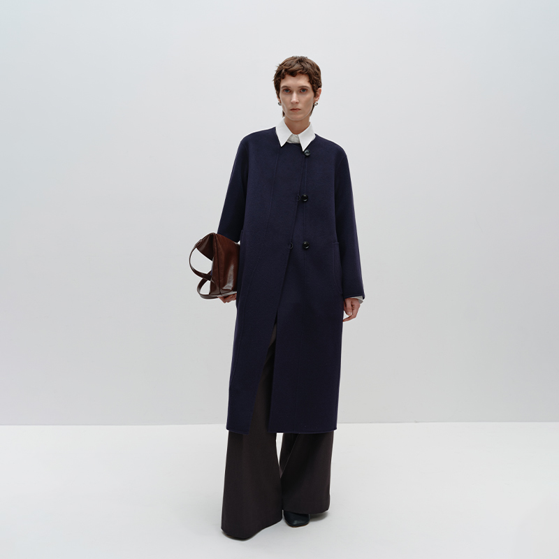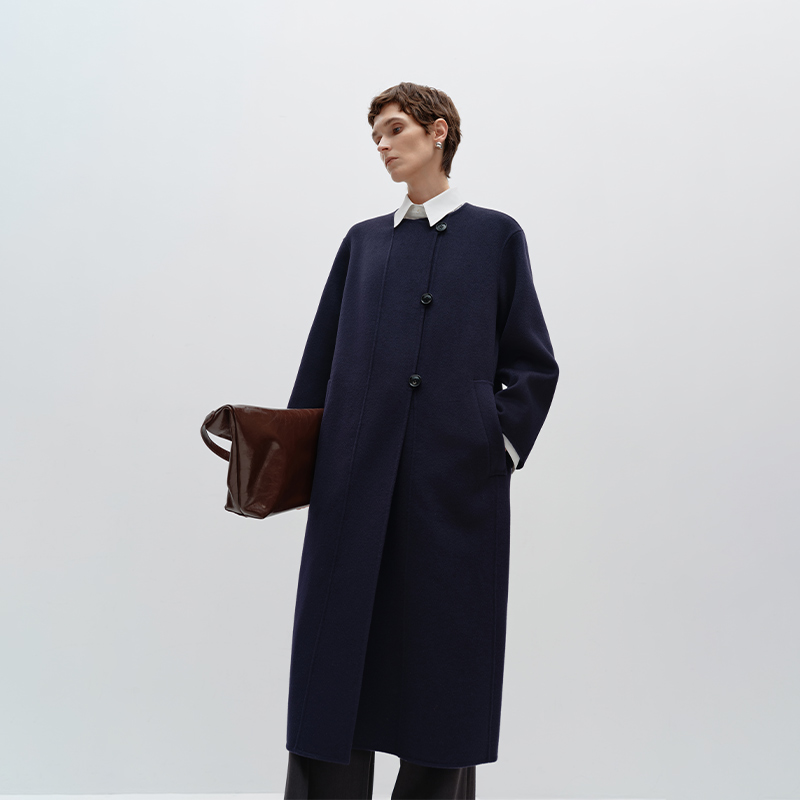 WHYSTUDIO 双面呢大衣 山羊绒高奢质感3ways翻领立领牛角扣中长款
