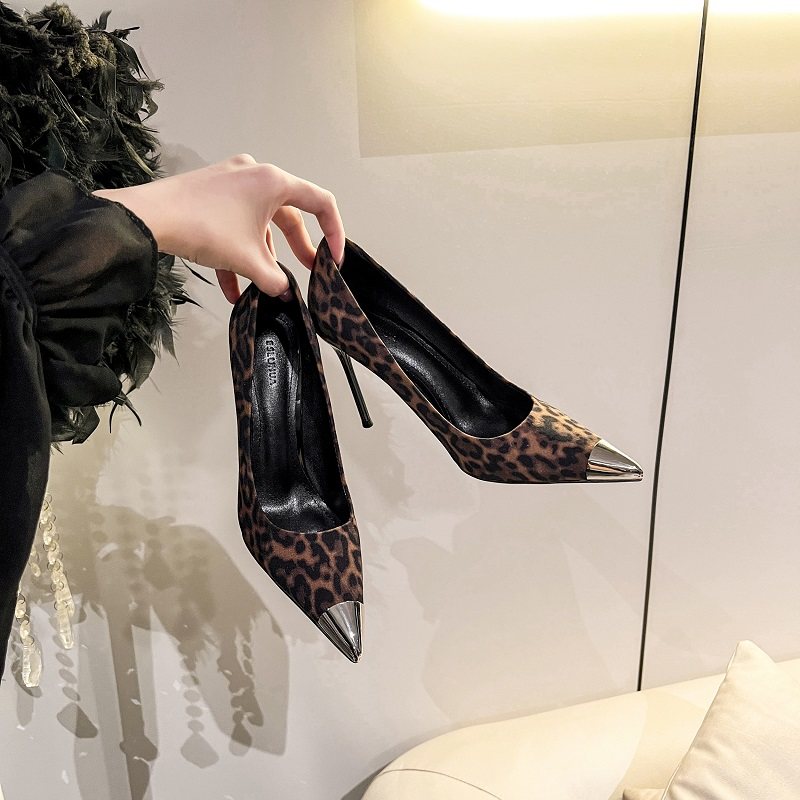 女细跟气质名媛通勤工作鞋 黑色高跟鞋 浅口尖头单鞋 爆款 女2025春季