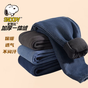 子学生冬裤 儿童男装 一体绒加绒保暖裤 男童牛仔裤 厚绒弹力 2025新款