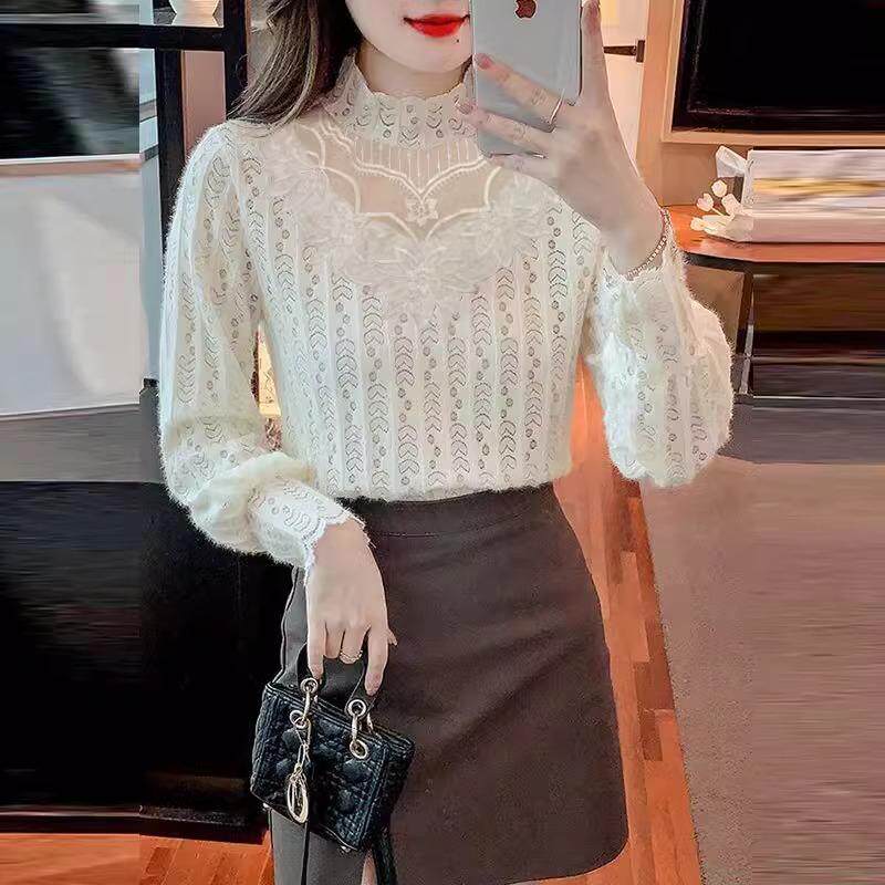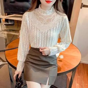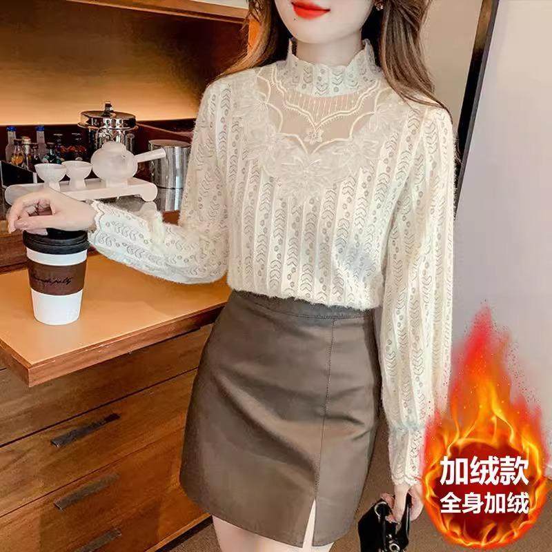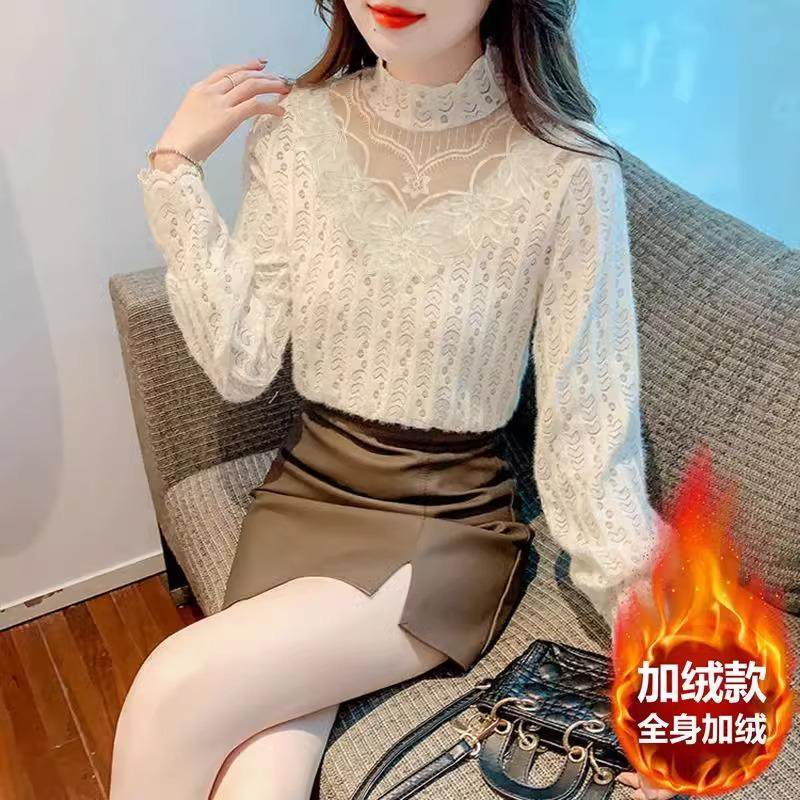 洋气减龄内搭小衫 女半高领时尚 潮 加绒显瘦蕾丝打底衫 2025秋冬新款