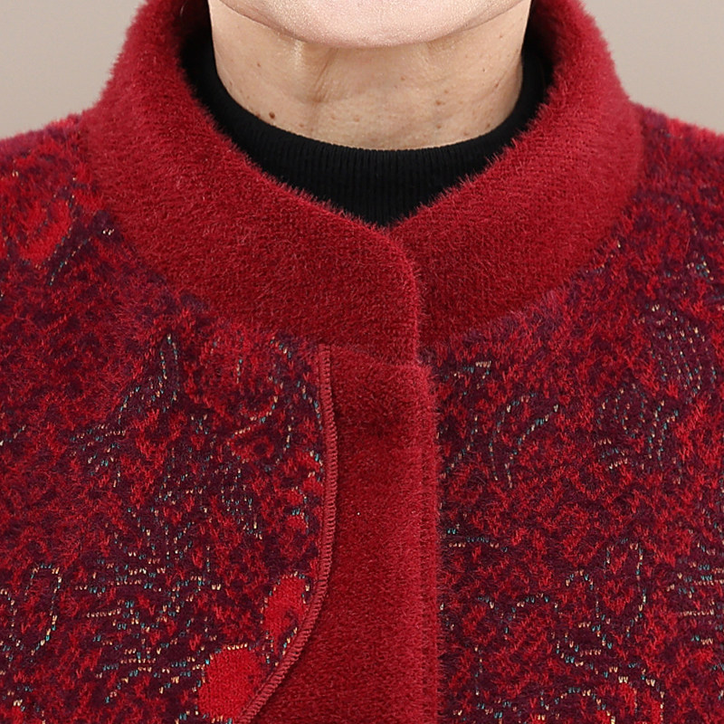 奶奶装 加厚加绒针织衫 半高领花朵仿貂毛毛衣中老年妈妈装 中年女装