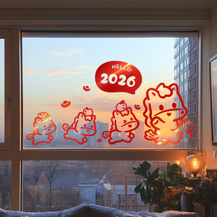 2026新款 饰窗花贴画春节过年静电创意玻璃新年贴纸氛围布置 马年装