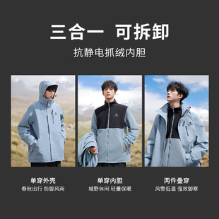 骆驼户外3514冲锋衣男女三合一欧若风蓝色外套冬季 防水三防登山服