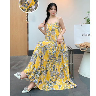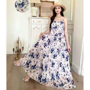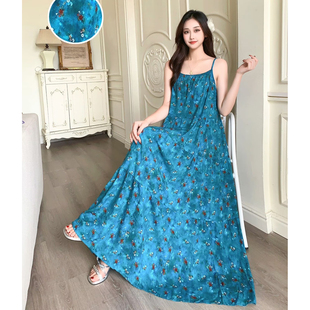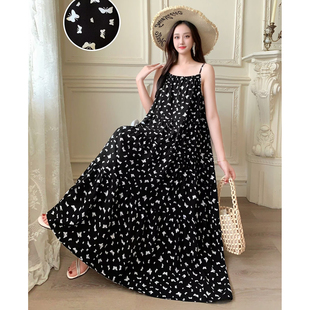 波西米亚棉绸碎花好看吊带裙连衣裙长裙宽松沙滩裙旅游海边度假裙