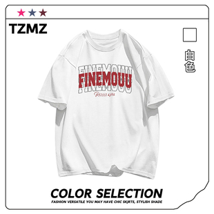 上衣服 夏2025休闲穿搭情侣半袖 美式 潮牌白灰色纯棉宽松t恤男短袖