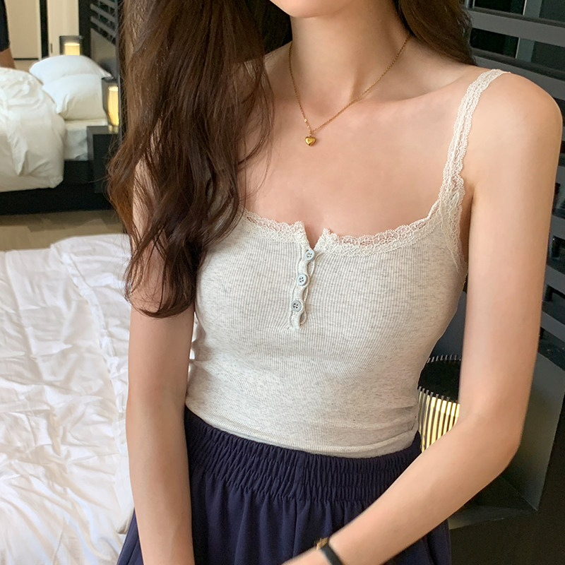 吊带背心上衣内搭打底衫 法式 修身 简约好搭配短款 女夏 蕾丝小性感
