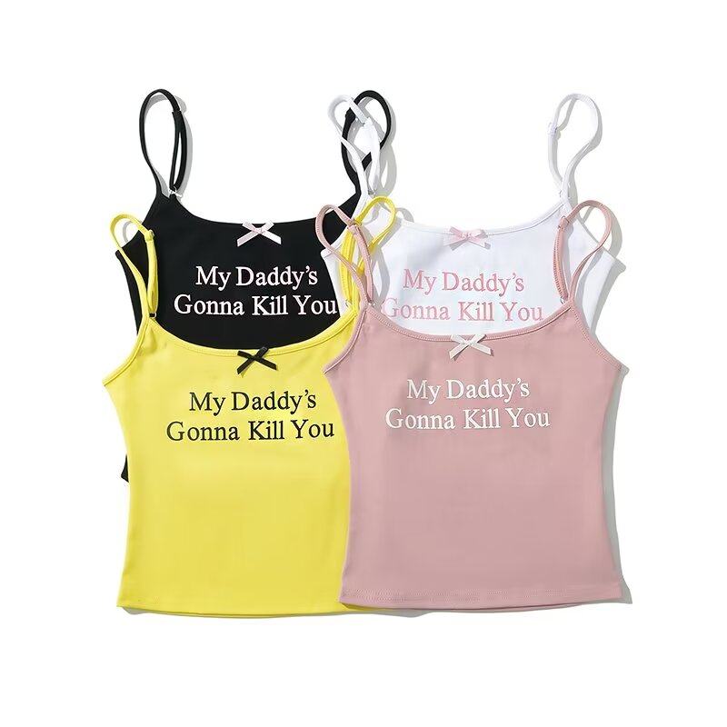 MosesQueen魔西女王美式 抹胸吊带背心女夏百搭露脐上衣 辣妹无袖