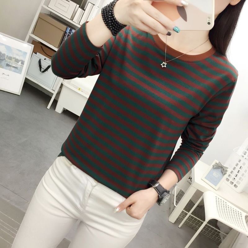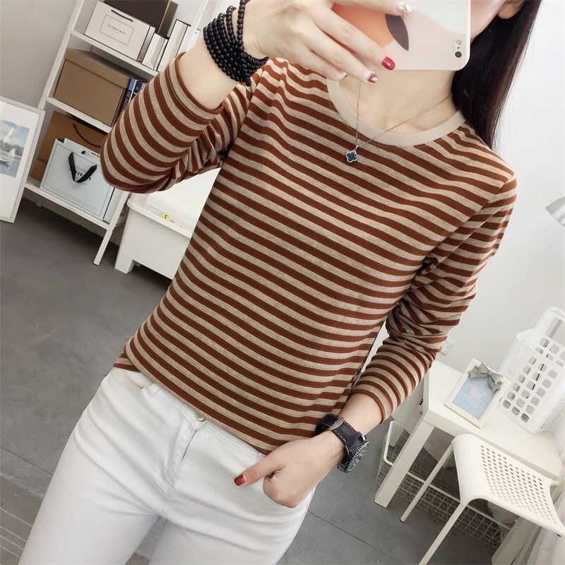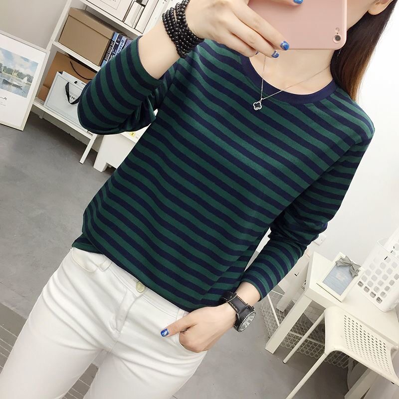 爆款 新款 小衫 大码 上衣 纯棉条纹长袖 胖mm洋气打底衫 T恤女2026春季