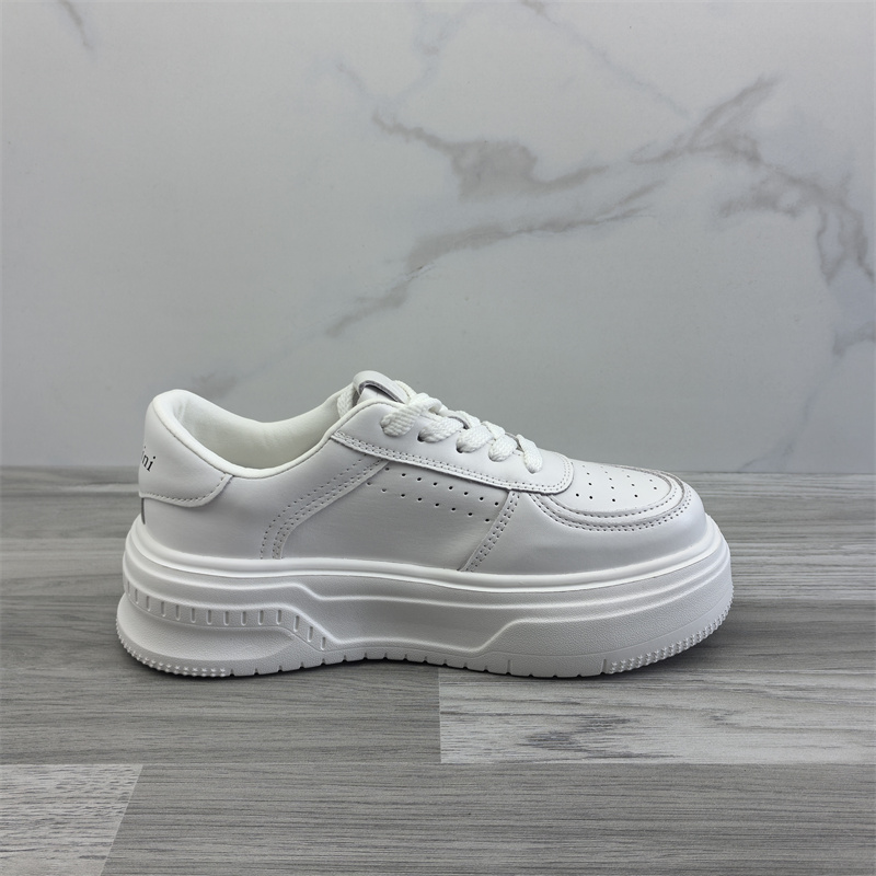 厚底休闲深口系带小白牛皮百搭女单鞋 2025断码 女鞋 真皮新款 春季