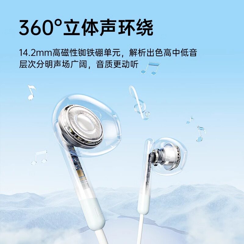 公牛耳机有线半入耳type c接口圆孔高音质适用华为小米oppo苹果15