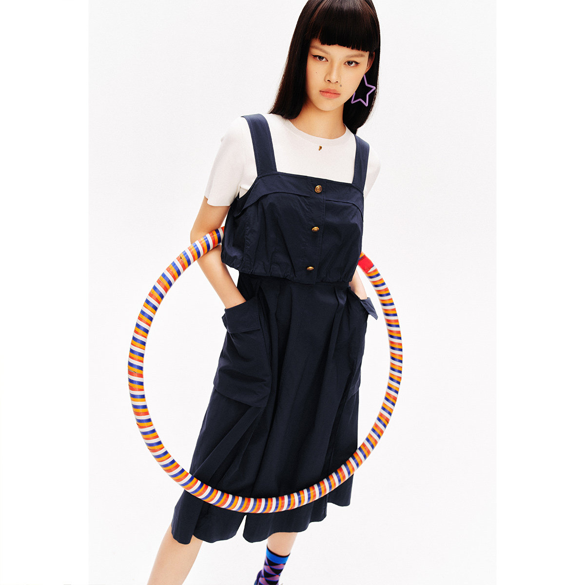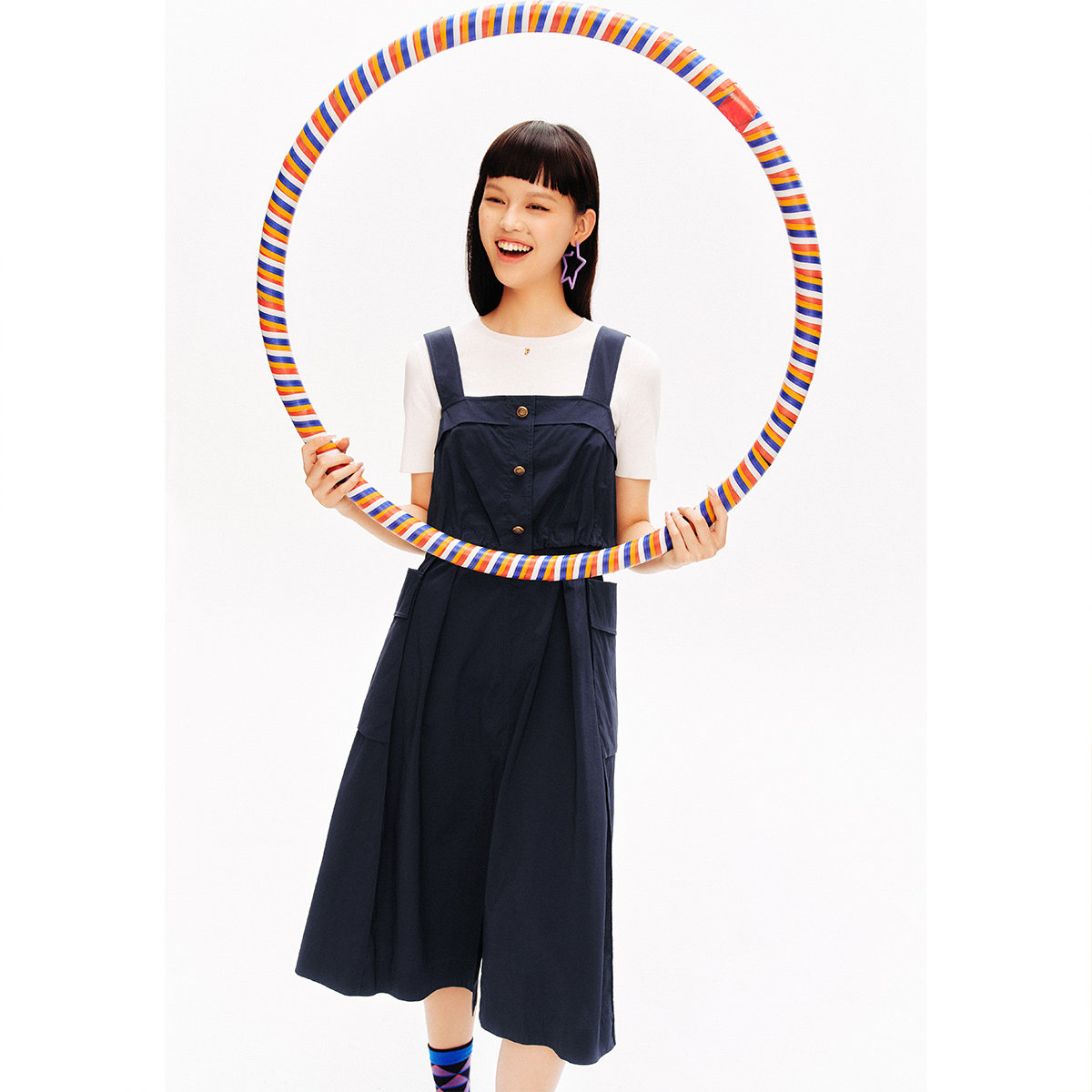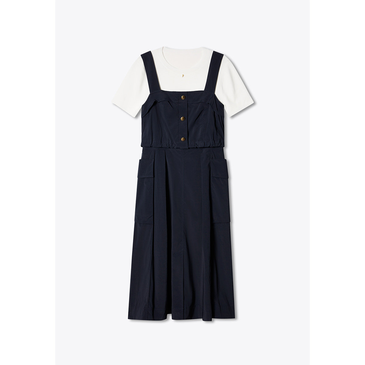 PSALTER诗篇白色圆领针织短袖 T恤背带连衣裙两件套夏款
