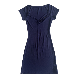 弹力包臀连衣裙 半开领修身 abg辣妹 纯欲U领螺纹短裙 BEAN
