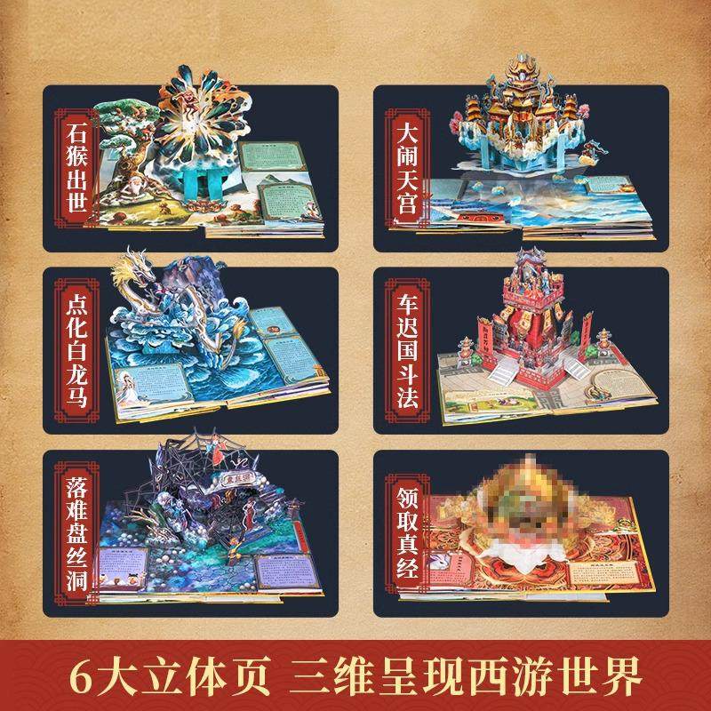 中国四大名著全套正版 8岁儿童绘本孙悟空机关翻翻书 红楼梦水浒传三国演义幼儿园小学生书籍生日开学礼物 西游记3d立体书3