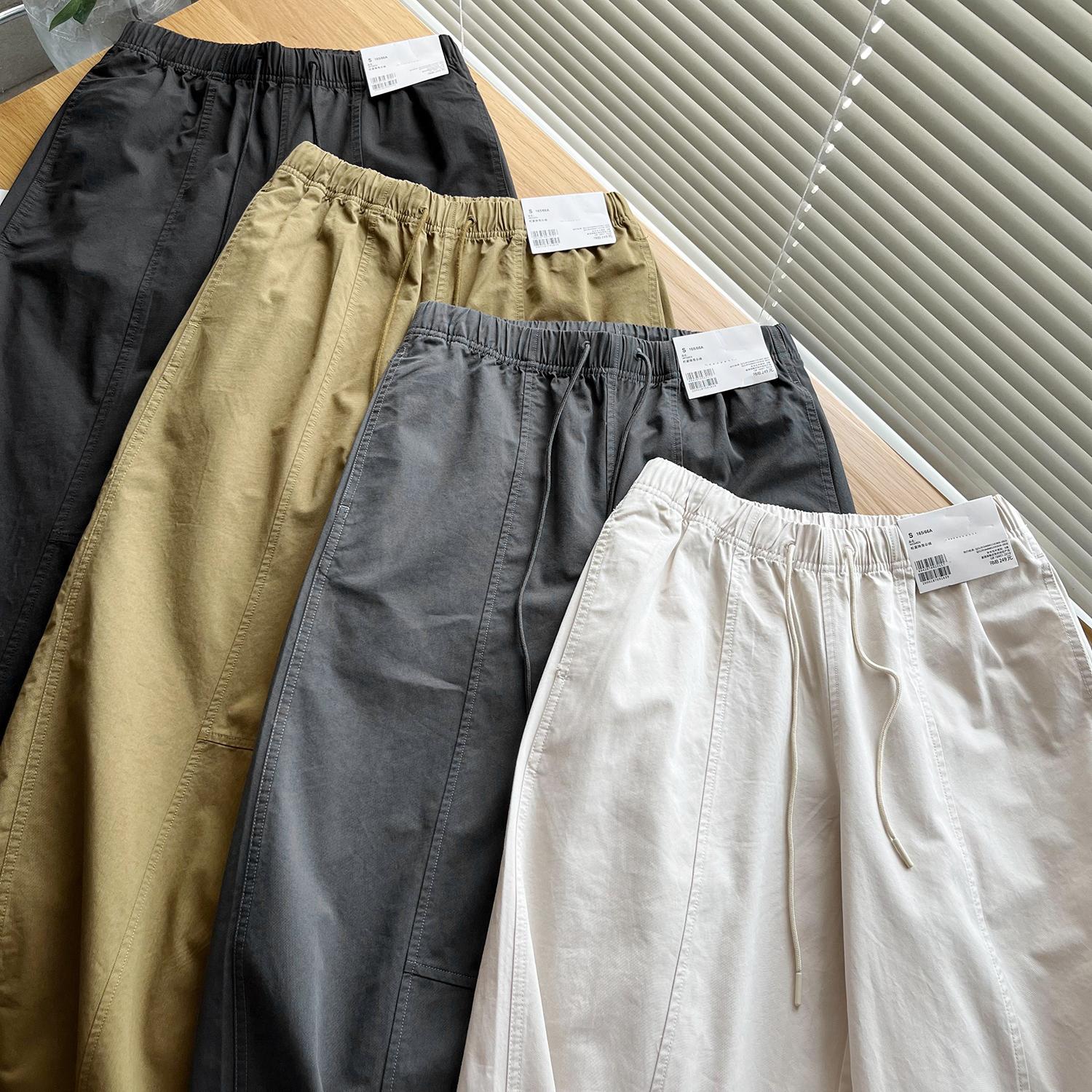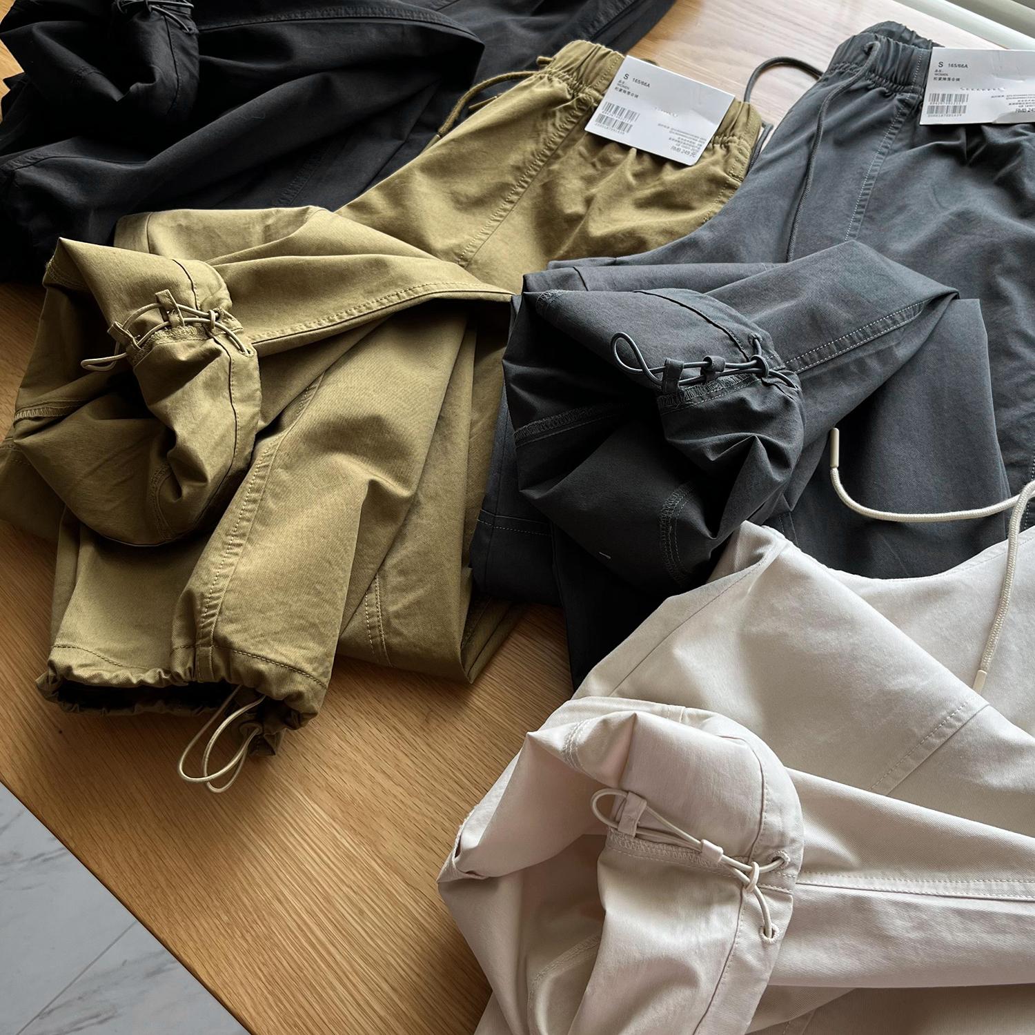 松紧腰系带宽松阔感休闲长裤 249 降落伞裤 束脚工装 日单U 裤 女装