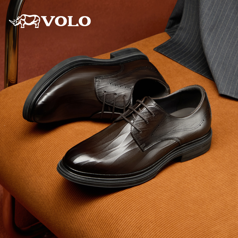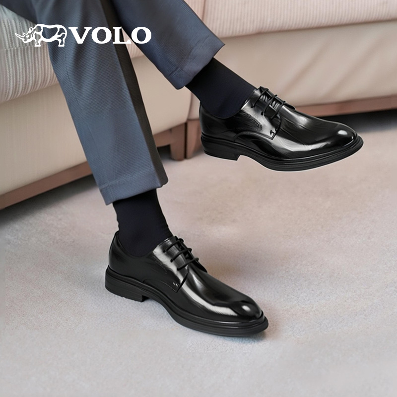 男款 全黑公务鞋 2025新款 内增高德比鞋 秋商务皮鞋 VOLO犀牛休闲皮鞋