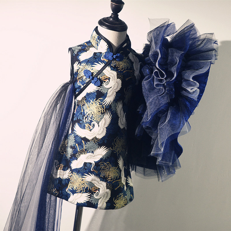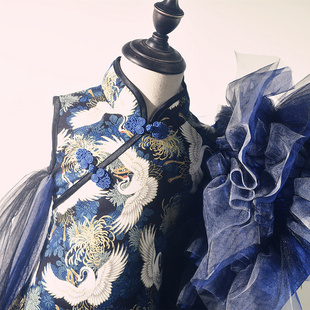 中长款 显瘦走秀连衣裙日常丝绸优雅气改良旗袍精致 复古演出服修身