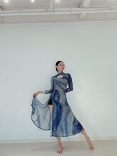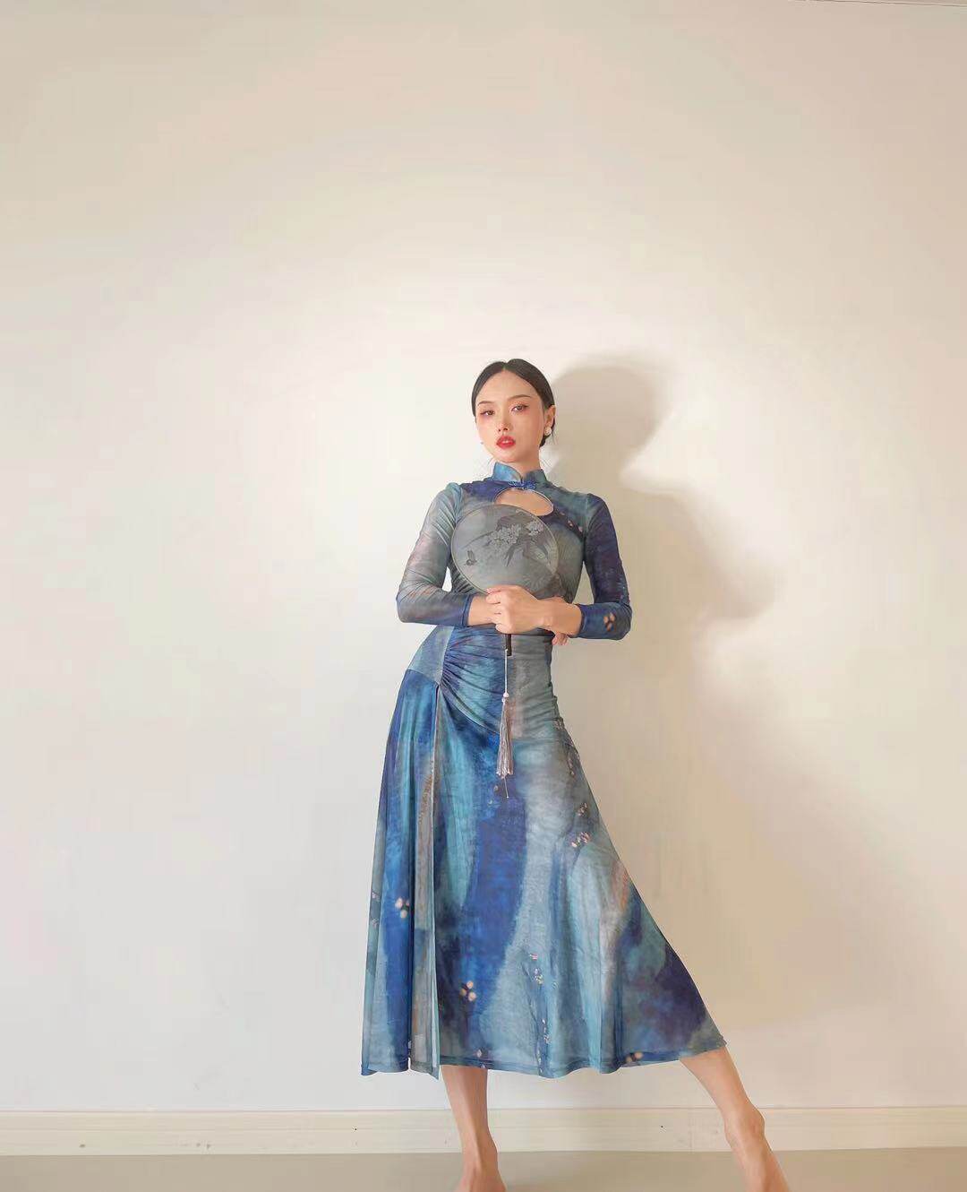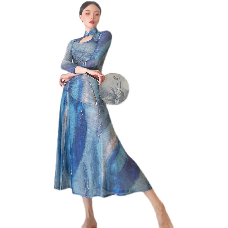 SOSO原创古典舞韵纱衣立领长袖 改良旗袍高开叉包臀裙摆连衣裙 修身