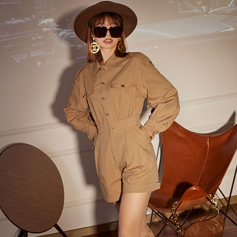 风连体短裤 阔腿高腰裤 休闲裤 新款 复古港味女秋季 pussycat猫咪工装