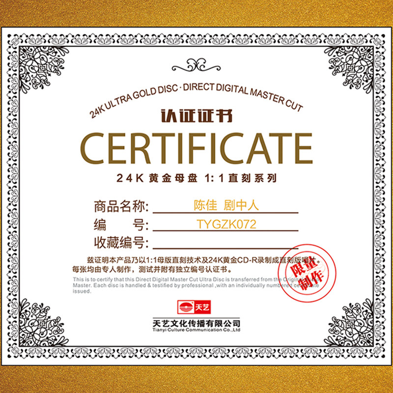 天艺唱片陈佳 黄金母盘直刻高品质HIFI发烧音乐CD 剧中人
