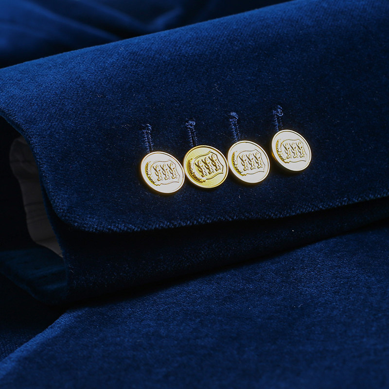 本派天鹅绒西装 外套男 男双排扣戗驳领丝绒布雷泽西服高定手工西装