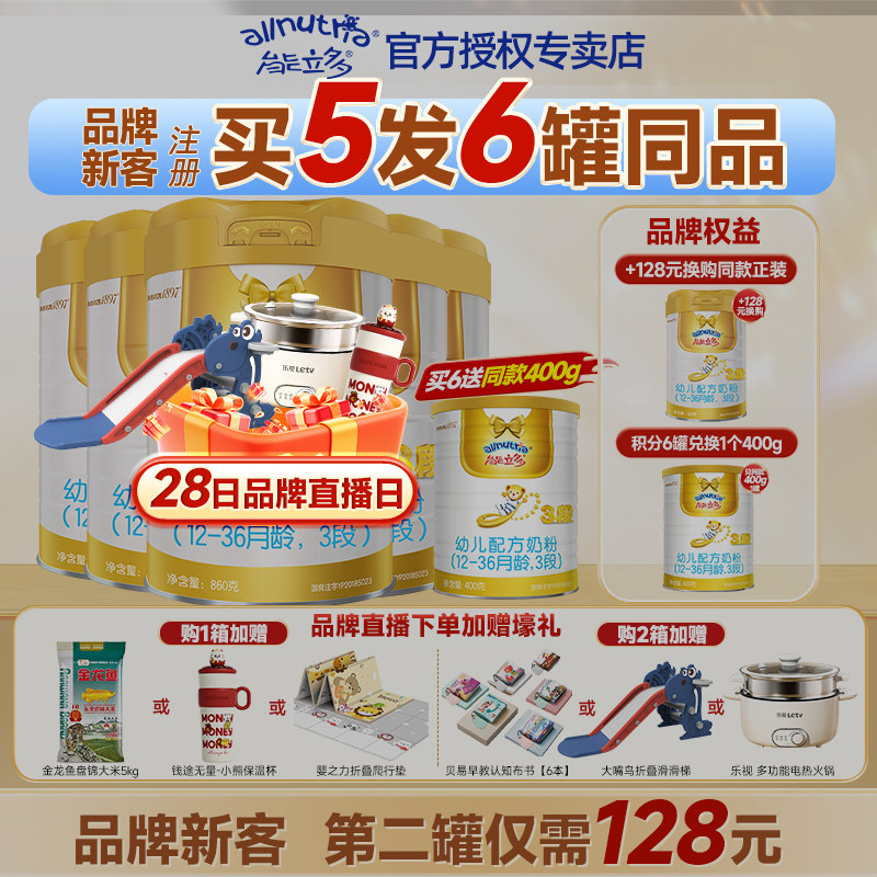 会员专属 5罐幼儿配方奶粉三段能立多旗舰店 澳优能力多3段860g