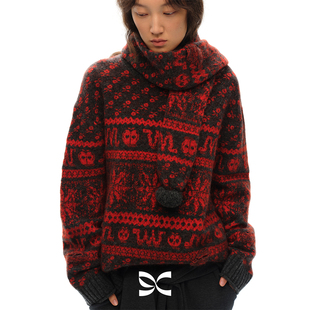 针织打底衫 品牌高级感羊毛衫 女半高领宽松毛衣秋冬加厚羊绒长袖