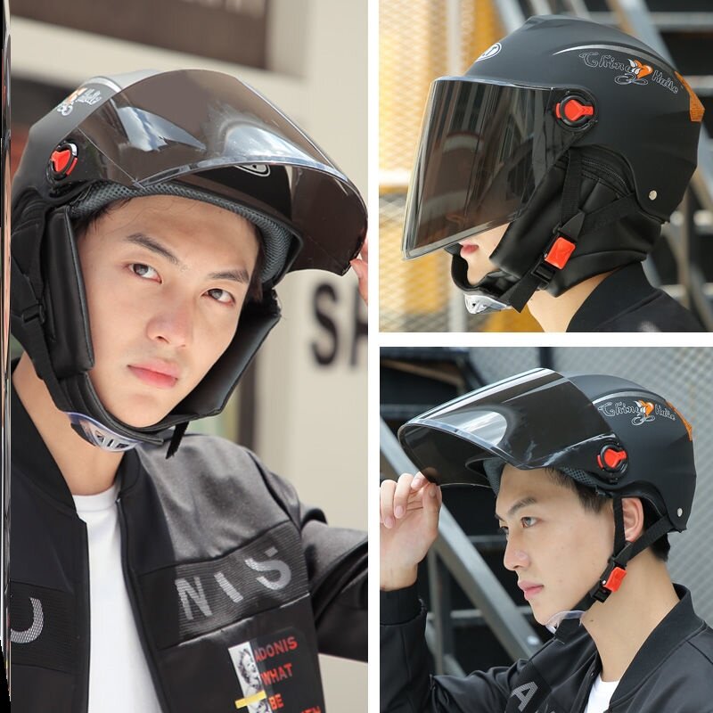 骑车黑色 男式 冬季 加绒保暖安全帽帅气户外可拆围脖头盔女可爱韩版