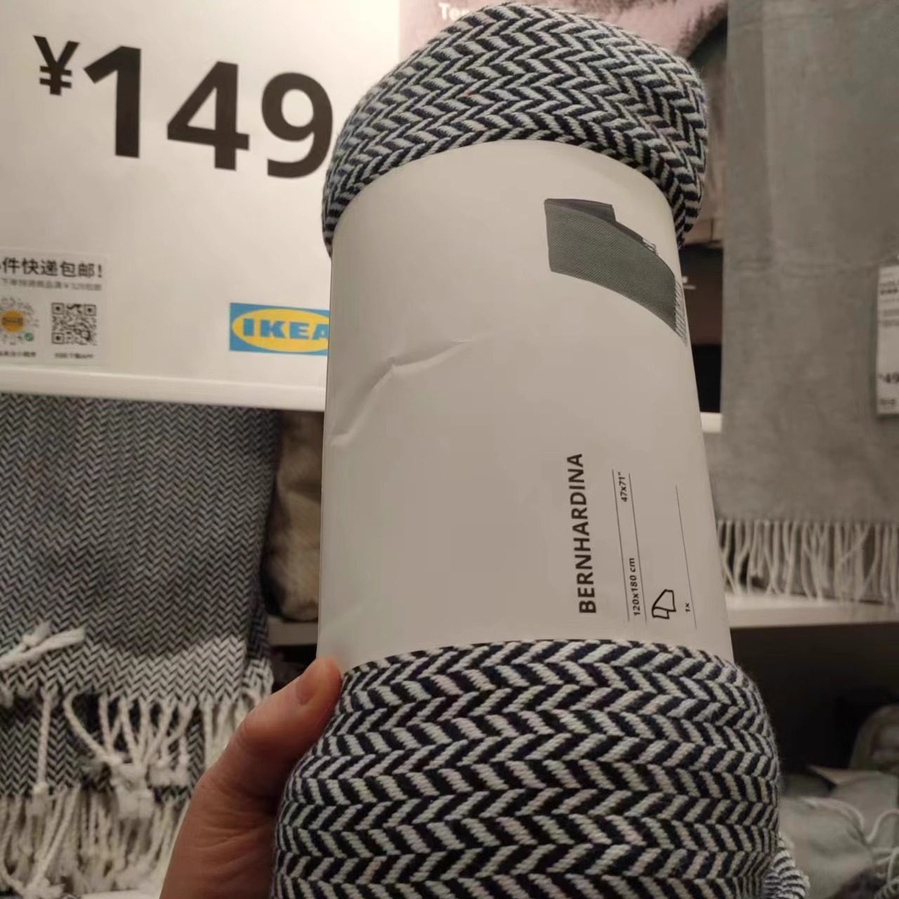 厘米 IKEA宜家本哈蒂纳休闲毯沙发毯盖毯毛毯蓝色白色120x180 包邮