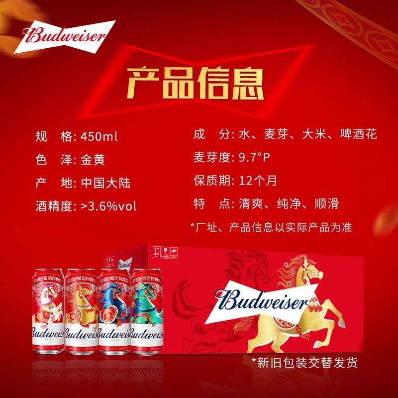 36听罐装 醇正红罐拉格450ml 百威啤酒经典 整箱批发 清仓