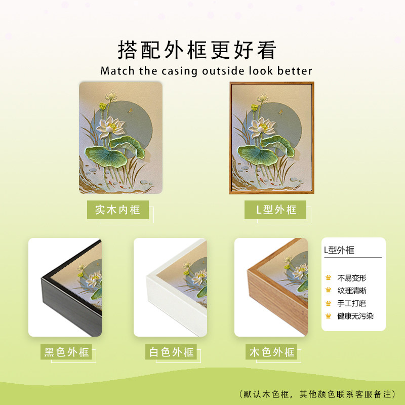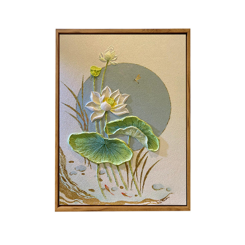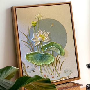 中国风月下白荷花卉石英砂肌理画DIY材料包手工填色装 饰数字油画