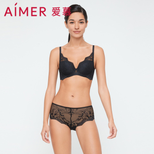 性感隐约透视蕾丝中腰平角裤 内裤 AM237541 女士新款 爱慕官方正品