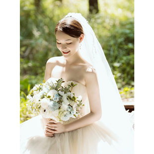 抹胸婚纱2025新款 气质主纱齐地高端简约大气奢华轻婚纱新娘宫廷风