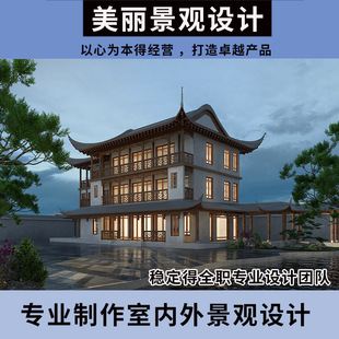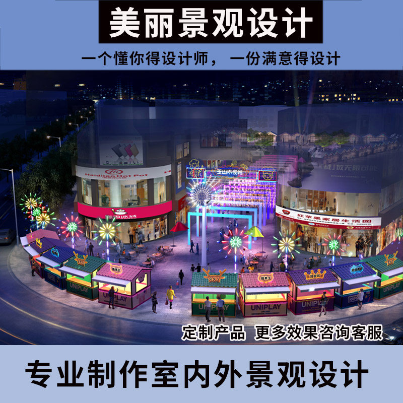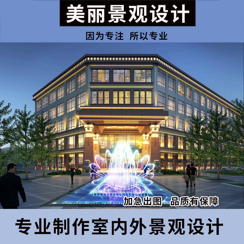 3d建筑园区景观园林绿化灯光亮化夜景鸟瞰效果图方案制作设计绘图