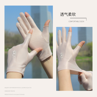 春夏露二指女薄短款 冰丝防晒透气采茶手套高弹力开车骑行触屏绣花