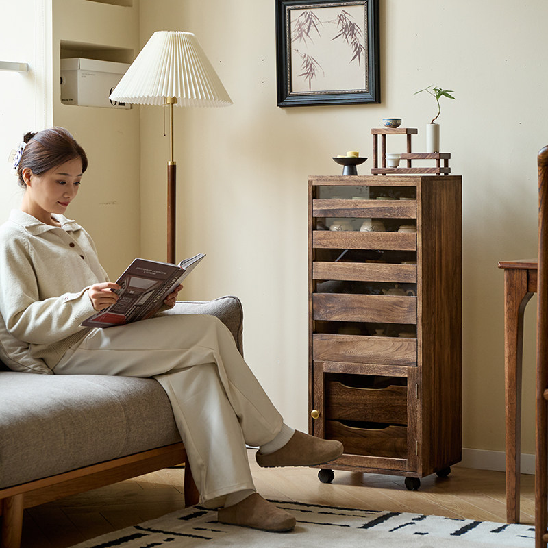 黑胡桃收纳茶具柜茶室茶斗柜可移动现代简约茶水柜 七层牙科柜