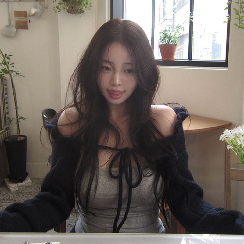 绑带披肩外套女 针织开衫 INS博主同款 纯欲风吊带背心木耳花边短款
