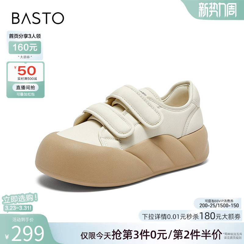 NC703AM4 魔术贴松糕厚底女休闲面包小白鞋 百思图春季 商场新款