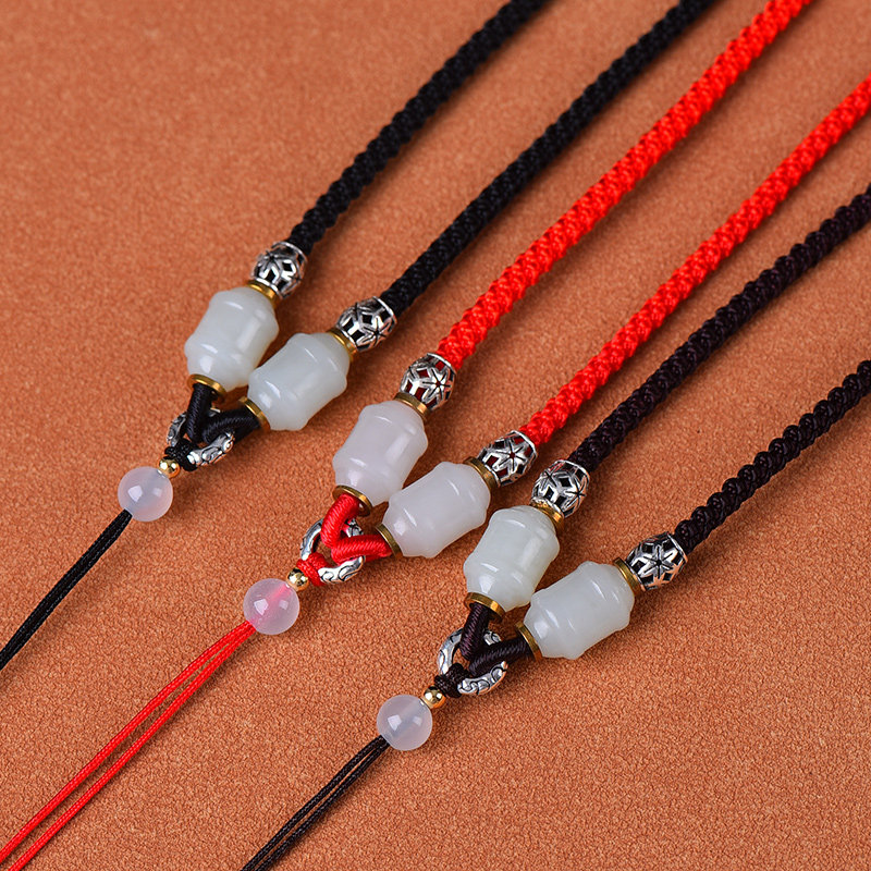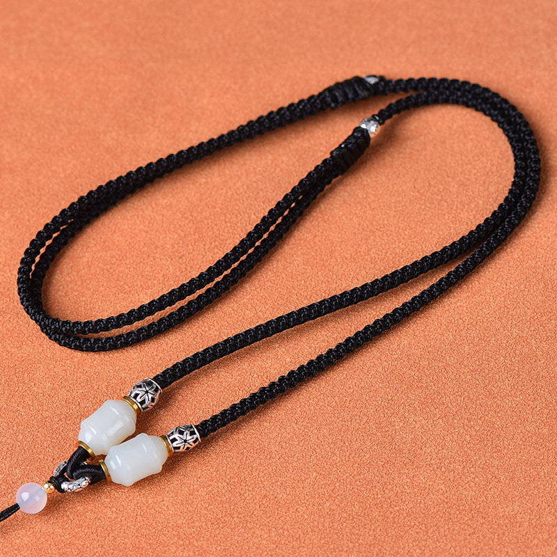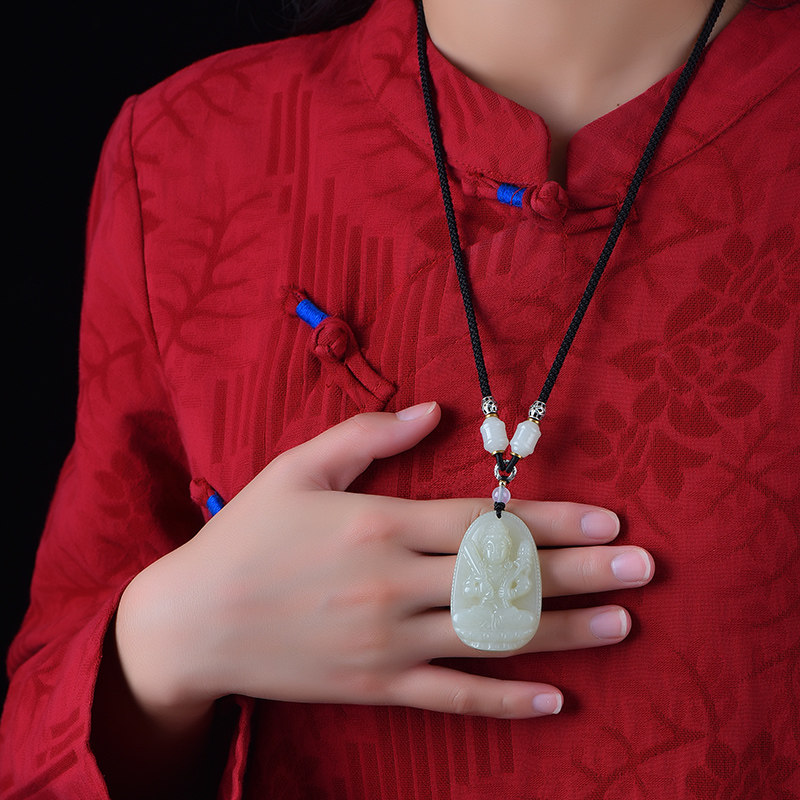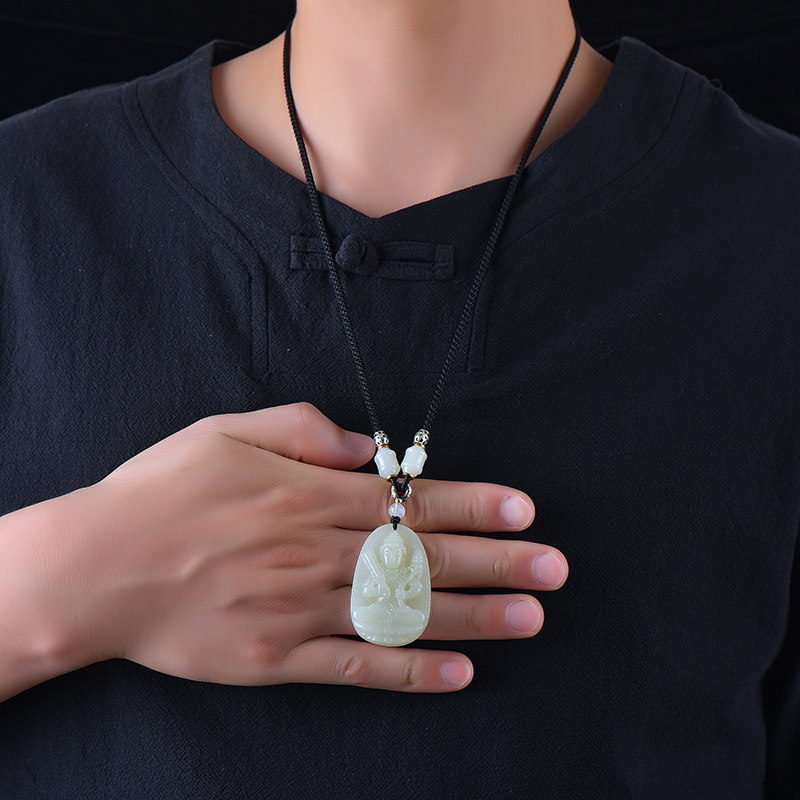 手工编织高端玉坠佛公吊坠挂绳男士 高档和田玉佛项链配玉绳子 女款
