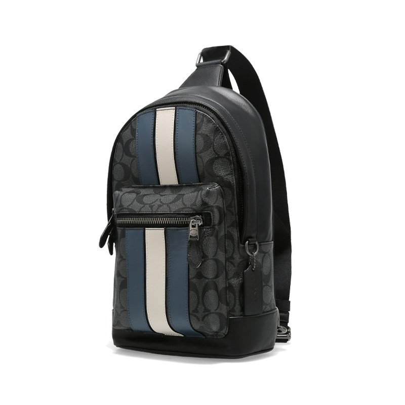 蔻驰男士 COACH PVC配皮单肩斜挎包胸包飞机包拼色皮革 自营