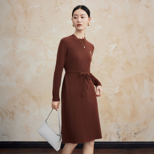 名媛风系带A字高腰裙 菲妮迪纯羊毛连衣裙2025冬新款 新年战袍