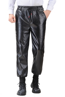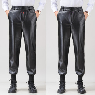 外卖工作裤 裤 PU皮 男宽松防水防油工作服宽松直通加绒加厚工装 皮裤