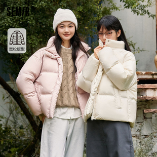 无帽轻薄外套 粉色新款 陈都灵同款 森马羽绒服女防水鹅绒立领冬季