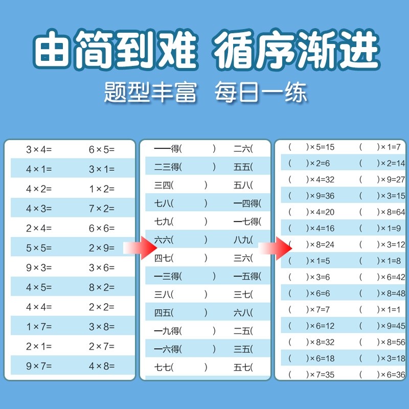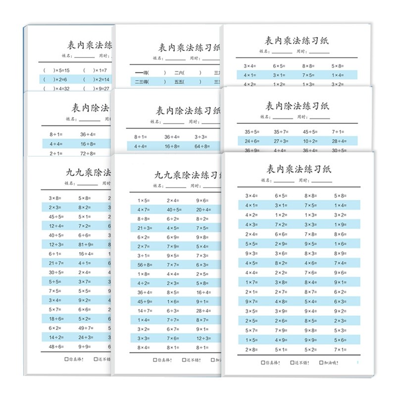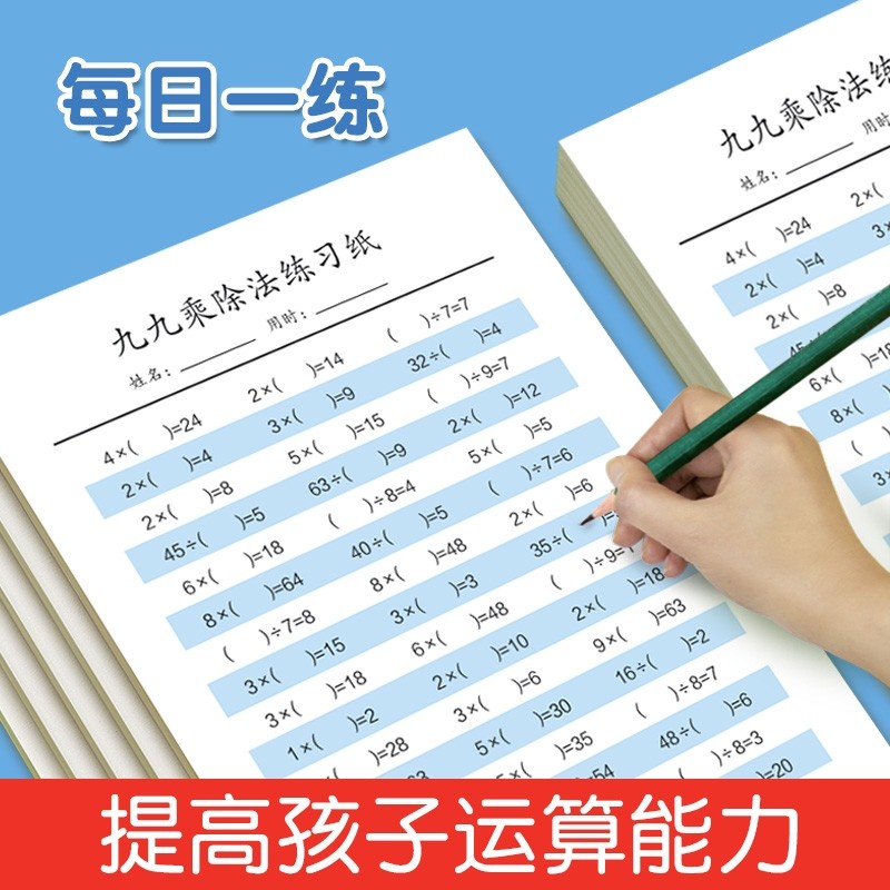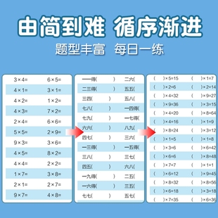 二年级口算题卡天天练九九乘法口诀表内除法乘除法练习本口算题练习题上册下册人教版 小学思维训练专项强化同步练习册天天练计算题