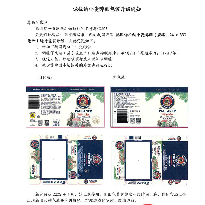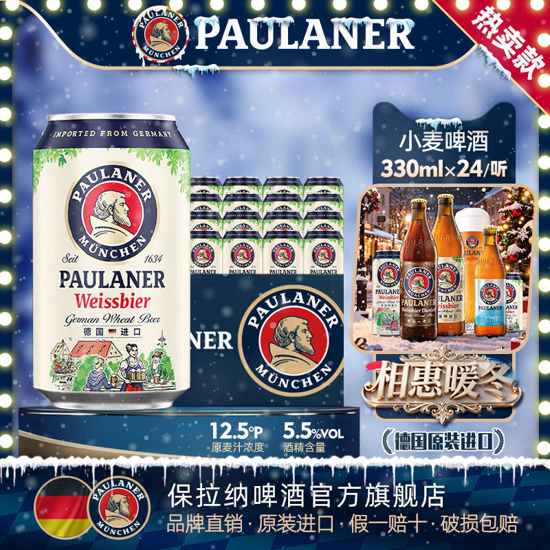 宝莱纳白paulaner德国进口柏龙白保拉纳白啤小麦啤酒黑啤500ML5听
