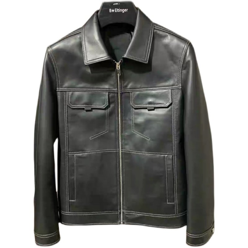 MrBu布先生机车风翻领拉链皮衣2025秋冬新款 纯羊皮外套男BT16986