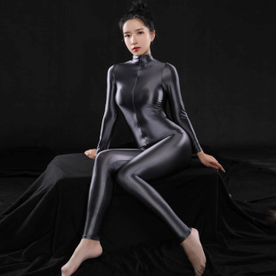 油亮丝滑性感双拉链连身打底裤 紧身连体衣裤 女不透明健美操运动装