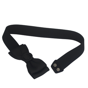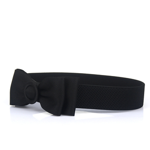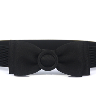 松紧弹力宽腰封甜美韩国少女连衣裙淑女手工布艺蝴蝶结腰带女黑色