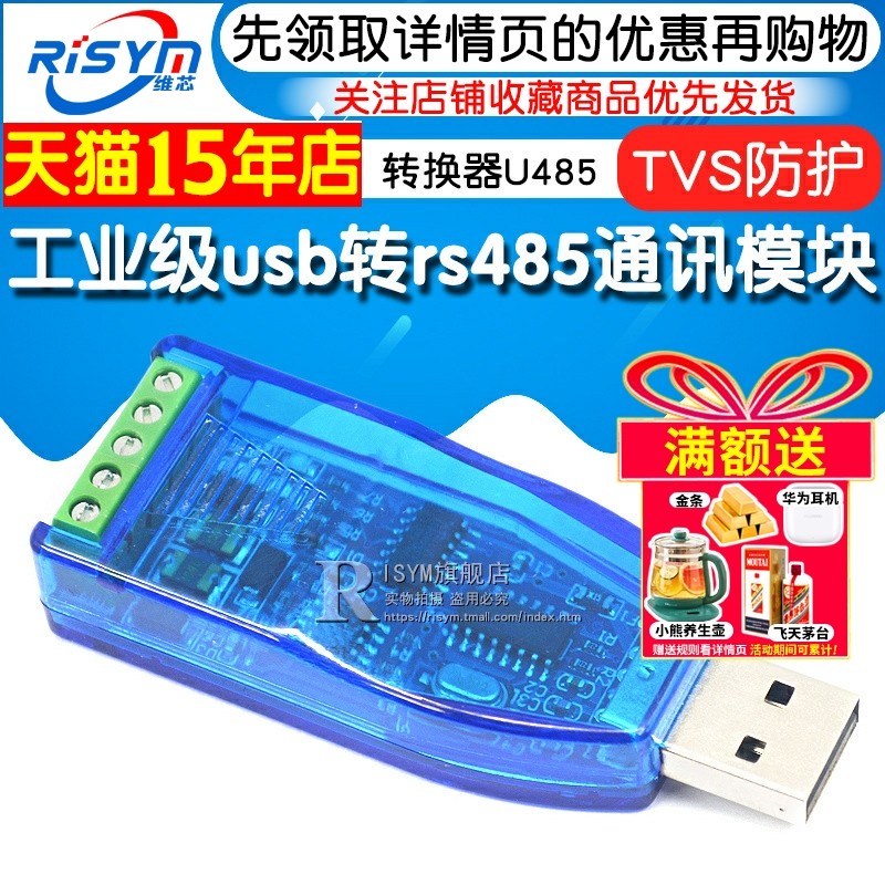 工业级usb转rs485通讯模块双向半双工串口线转换器 TVS防护 U485