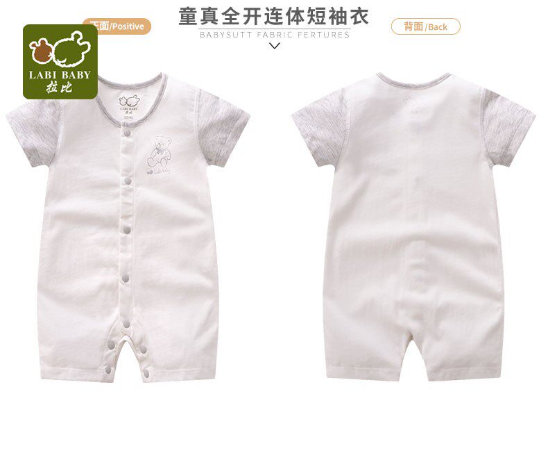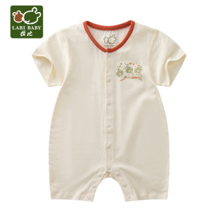 连体衣夏季 短袖 纯棉竹纤维柔软爬服 男女童新生儿宝宝薄款 拉比正品